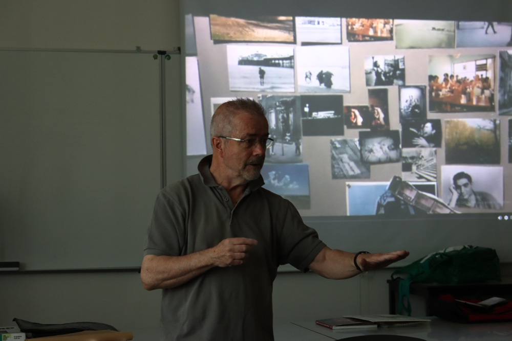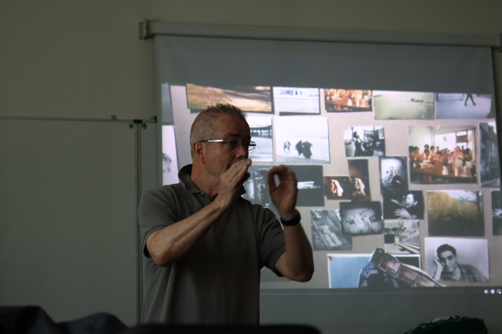 A ilustradora falou e exemplificou a importância do processo do trabalho (pesquisa em torno da temática ilustrada), empenho (trabalho em atelier que começa todos os dias estipulados às 8 da manhã) e criatividade (tratamento das proporções e dos olhares das imagens ilustradas de forma criativa e diferenciadora de outros ilustradores; da utilização de papeis coloridos para realçar o trabalho ilustrado, como papel kraft (papel de embrulho de fácil acesso).