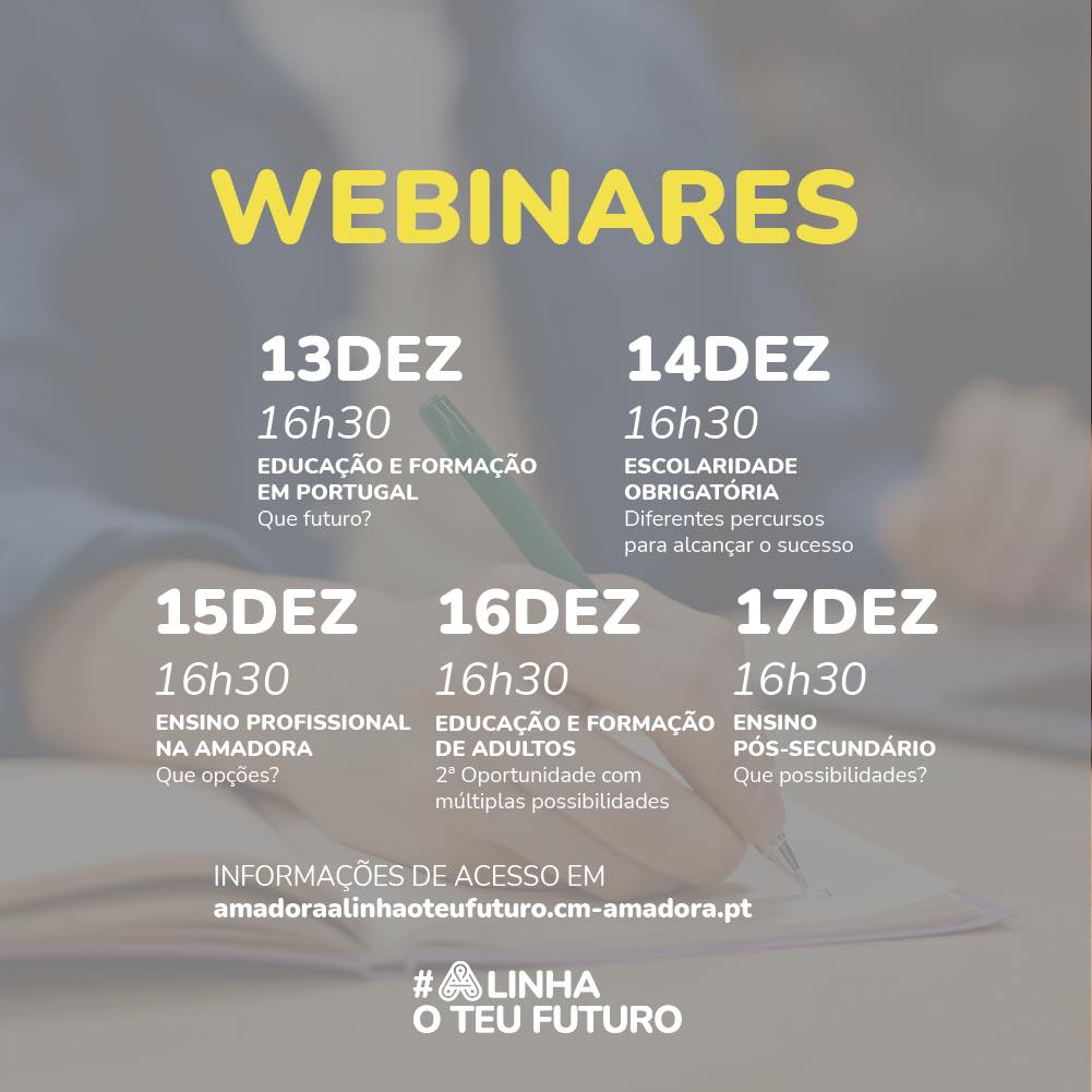 A inscrição nos webinares é obrigatória, no site amadoraalinhaoteufuturo.cm-amadora.pt