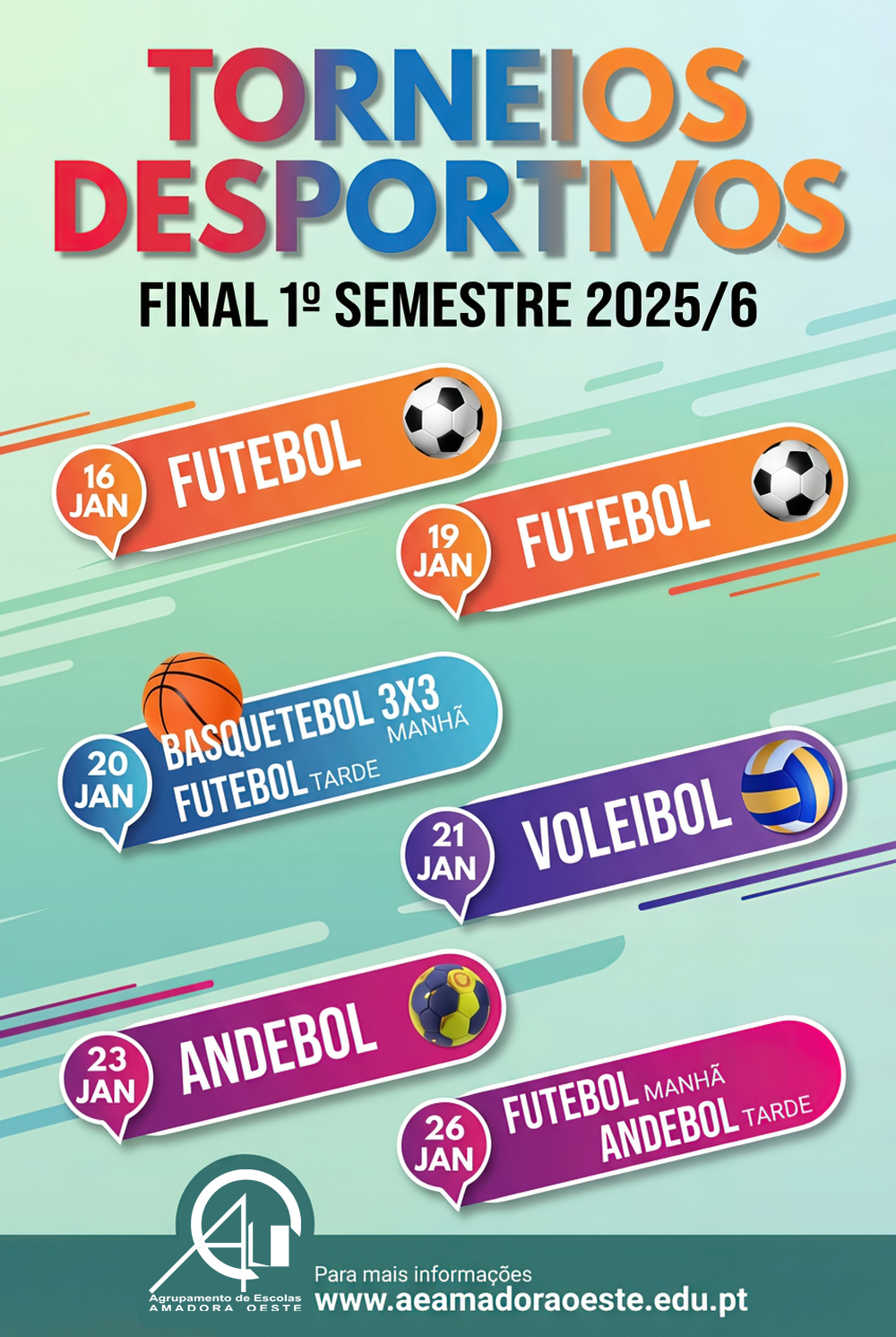 27 Jan.2026 Torneios Desportivos do final do 1º semestre 2025/2026: quadros de classificações finais Escrito por Educação Física. QUADROS DE CLASSIFICAÇÕES FINAIS FUTEBOL ANDEBOL BASQUETEBOL 3x3 VOLEIBOL Marcações: Desporto, EducaçãoFísica, 2025-2026 Comentar Atualizar Enviar Cancelar